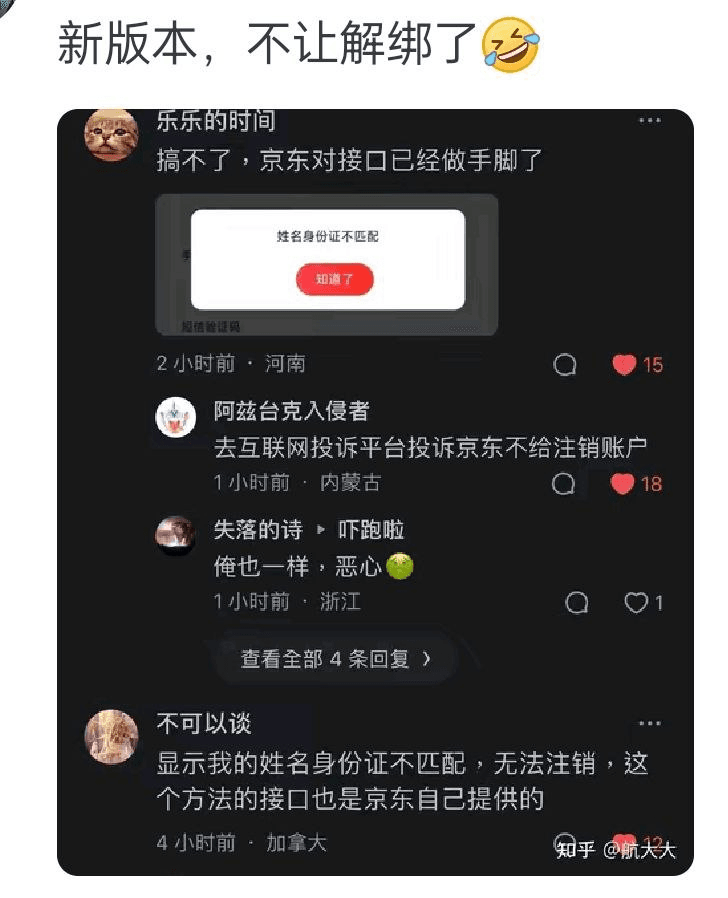 知乎有人转发NGA观点说明京东不会同步解绑状态,也就是说,你在京东APP里解绑银行卡,但银行不知道这事情,快捷支付里面还是有京东的合约。