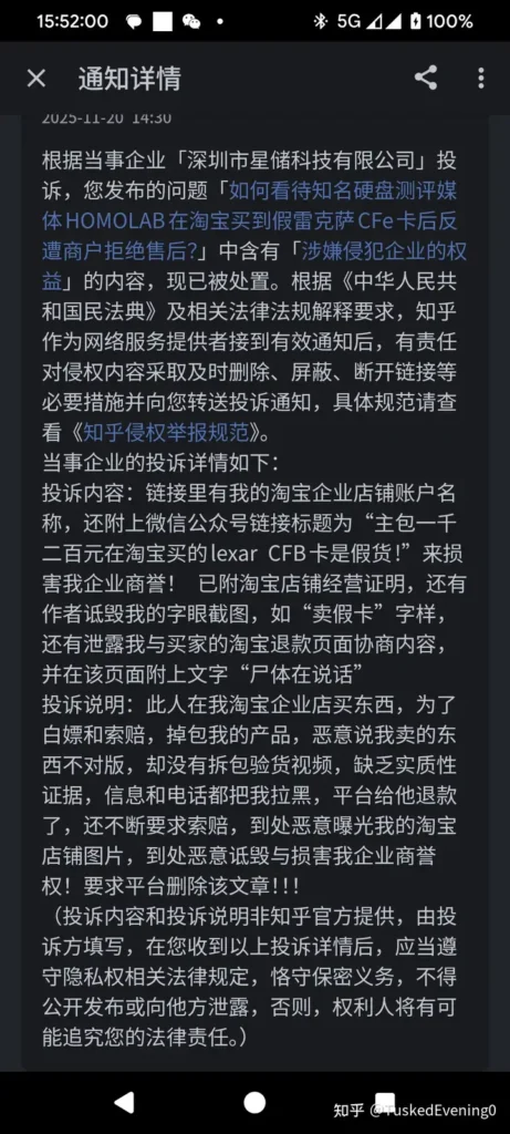 同时,一个免费的公关建议,不要去理这事了,本来就没多少热度,全被你这么一整,起来了(同时,因为你的张冠李戴,我不得不水了一篇博客,还因为其特殊性质顺带同步到了其它平台)。你这是维护了面子,但是丢了里子。人们更会相信你卖假lexar卡,还会公关那些买了你的卡的用户,最终结果是所有人都知道你卖假卡还说不得。