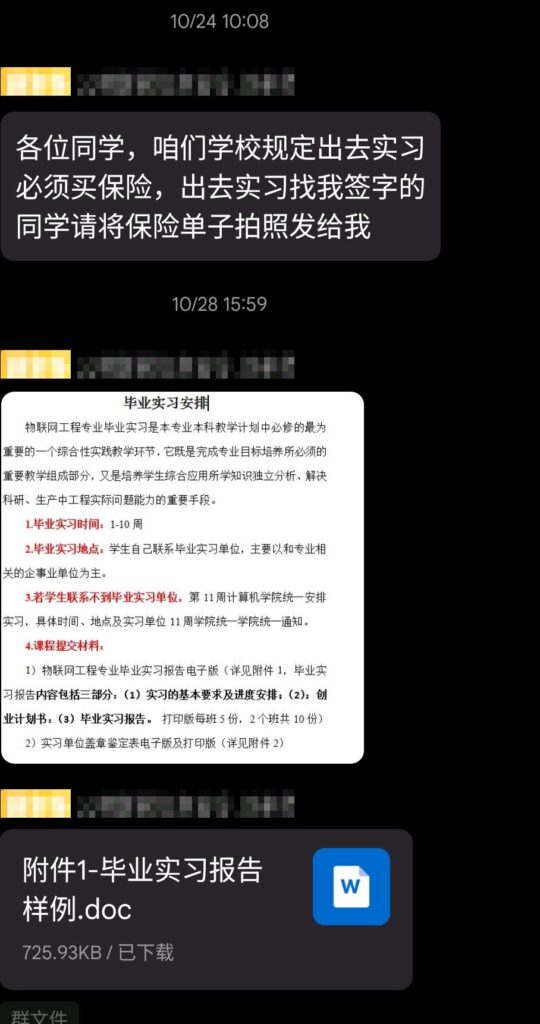 毕业实习要求交报告、日志(是的,日志)和鉴定书(校内实习不用交),重点是报告不说要写什么,日志连模版都没有(甚至是临时加的)。